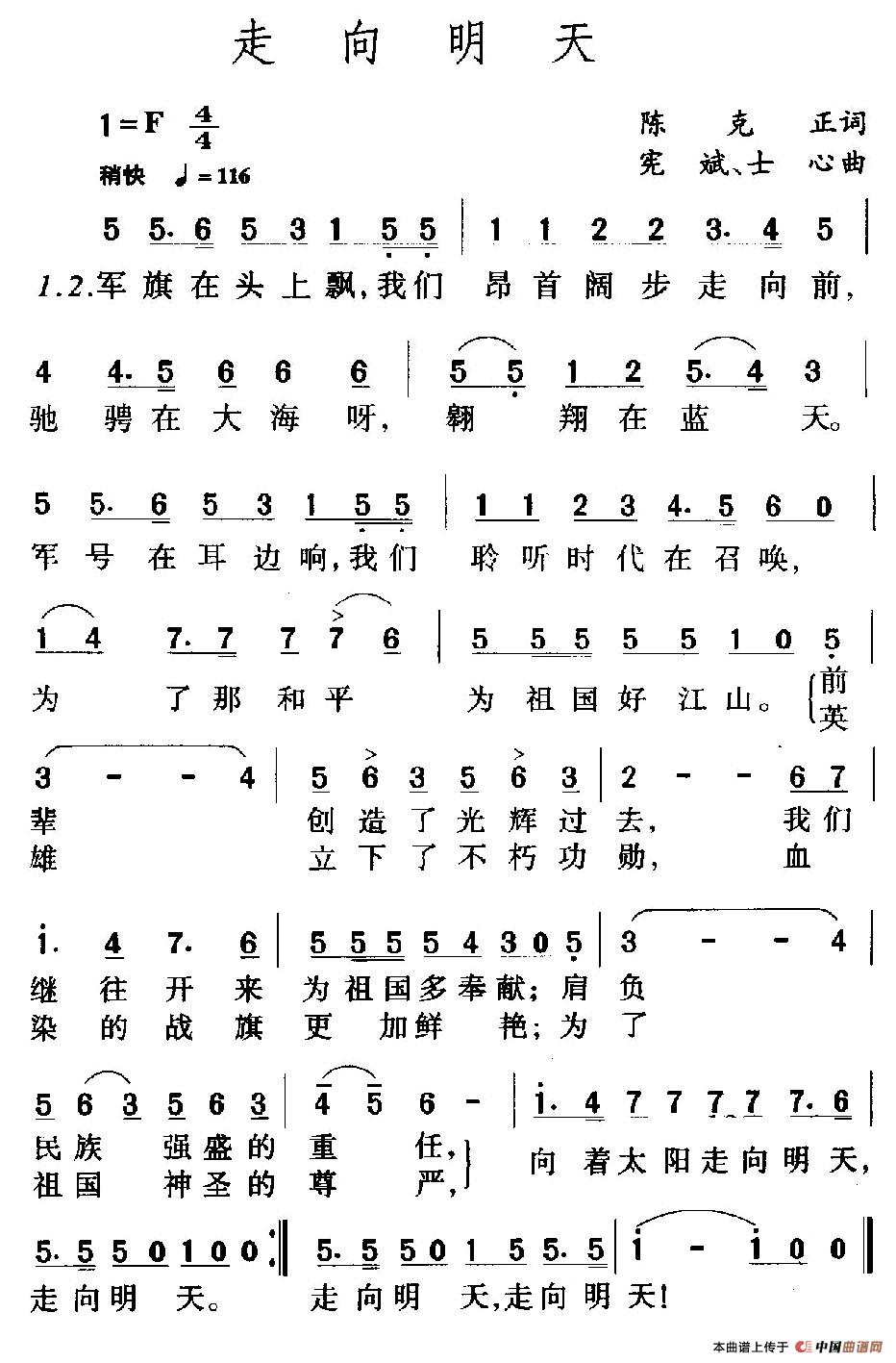 《走向明天》简谱