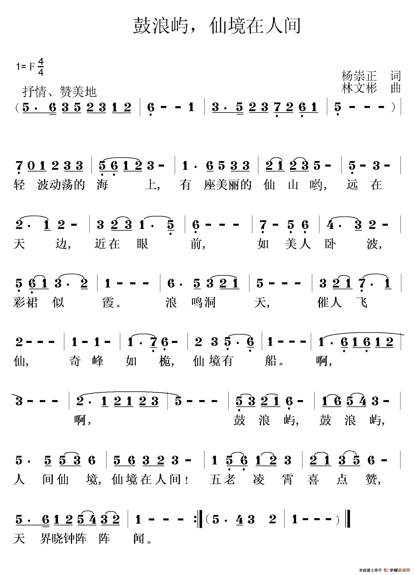 《鼓浪屿,仙境在人间》简谱