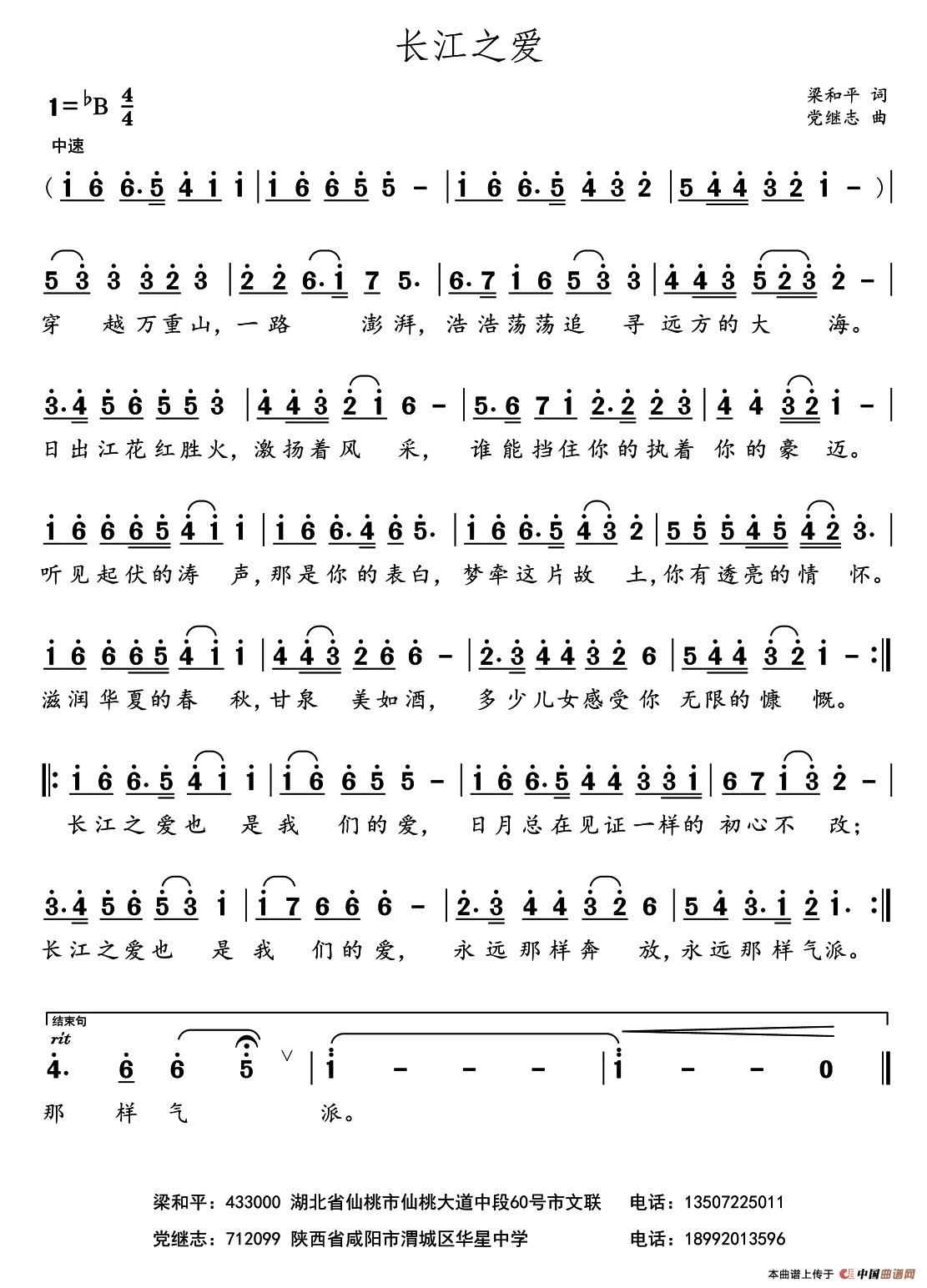 《长江之爱》简谱