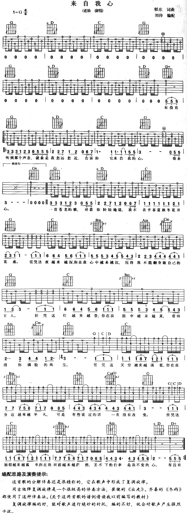 《来自我心》吉他谱 老狼