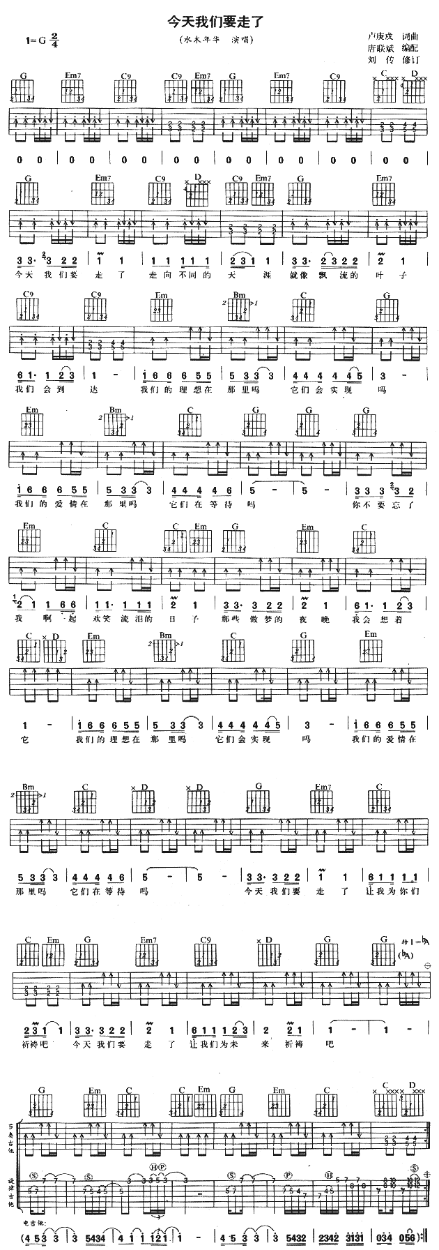 《今天我们要走了》吉他谱 水木年华