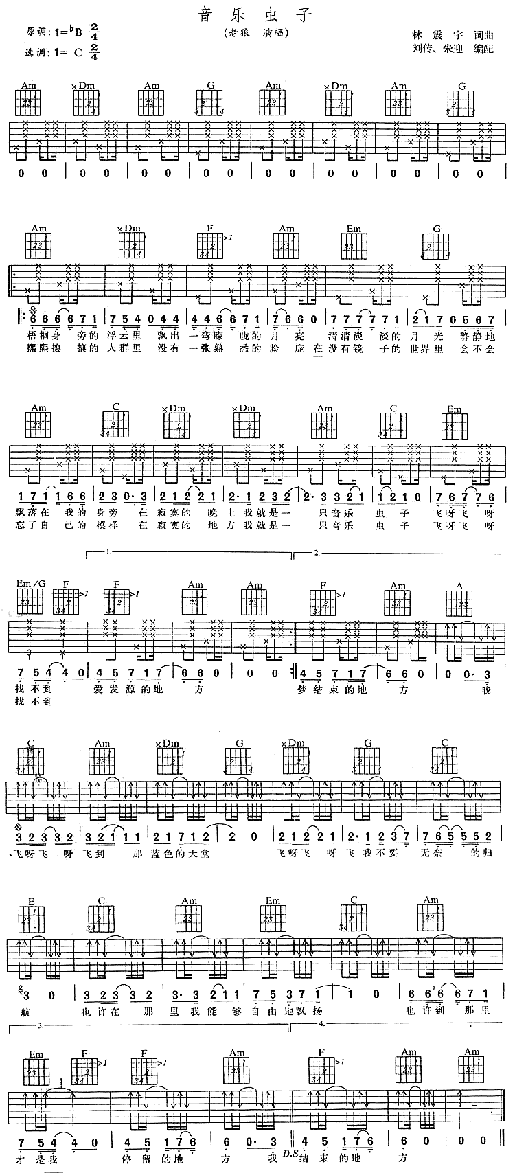 《音乐虫子》吉他谱 老狼