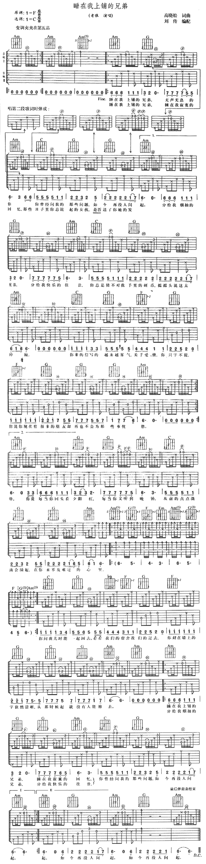 《睡在我上铺的兄弟》简谱 老狼 点这里