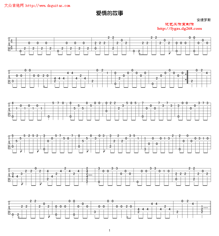 《爱情的故事》吉他谱