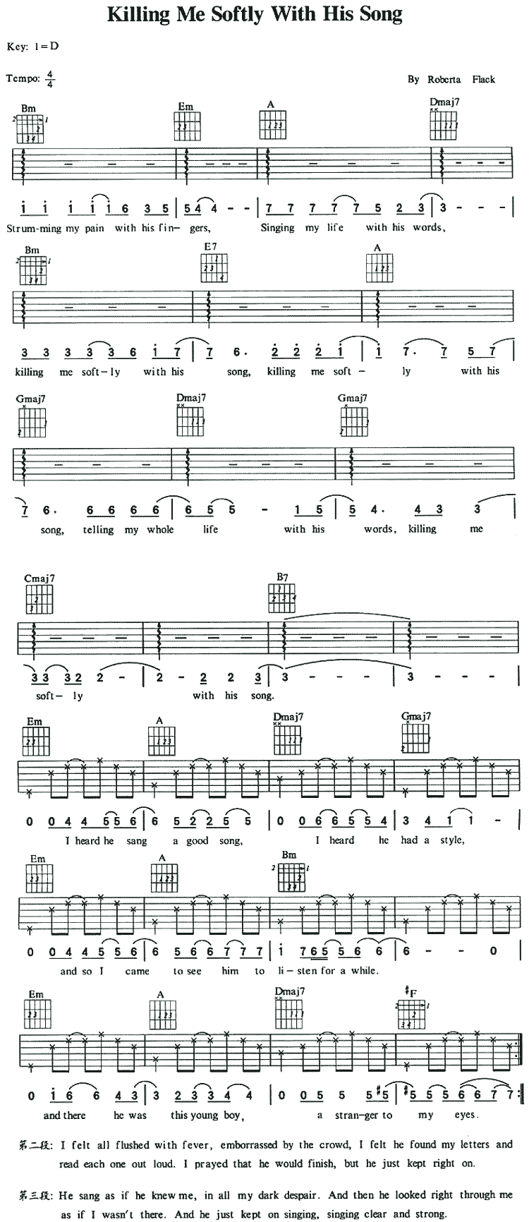 《Killing Me Softly With His Song》吉他谱