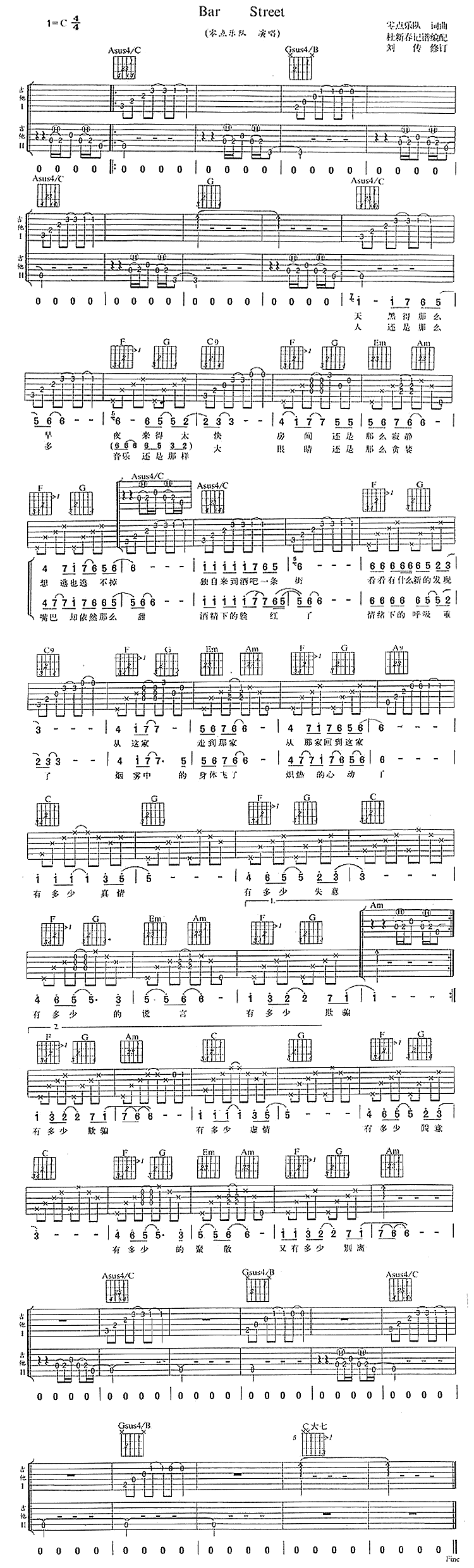 《Bar Street》吉他谱 零点乐队