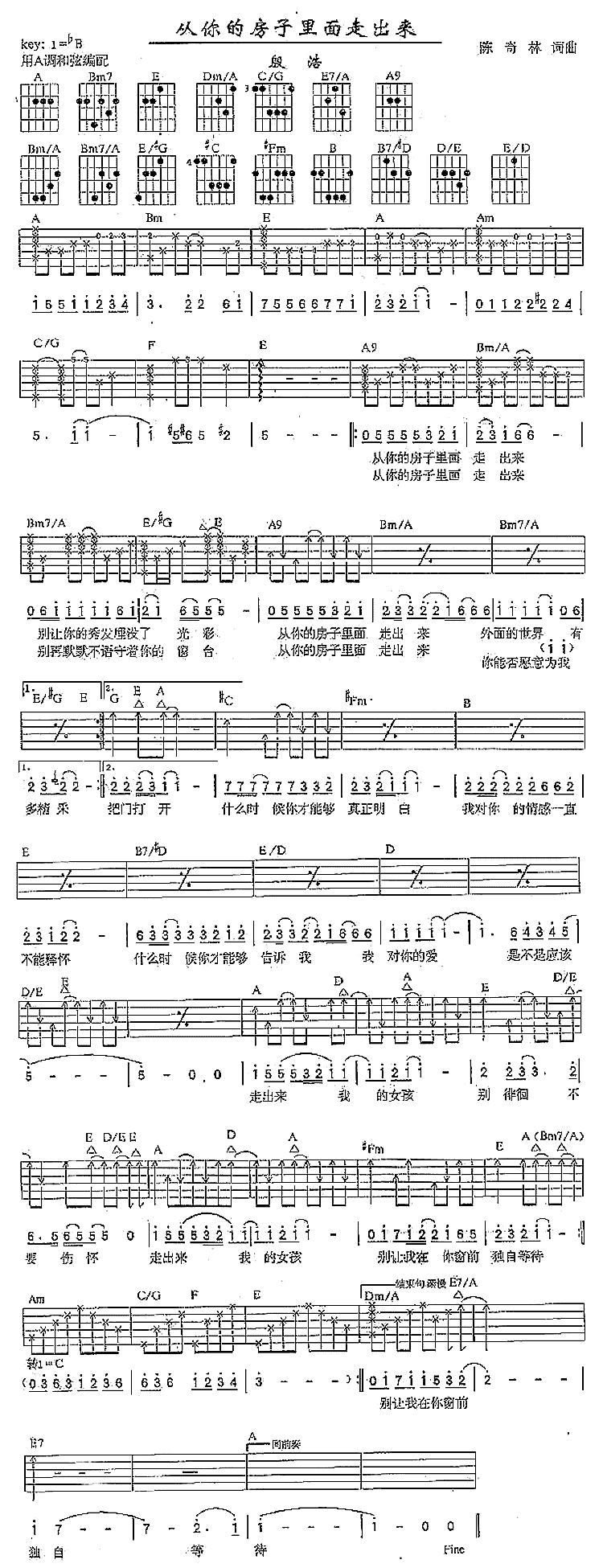 《从你的房子里面走出来》吉他谱