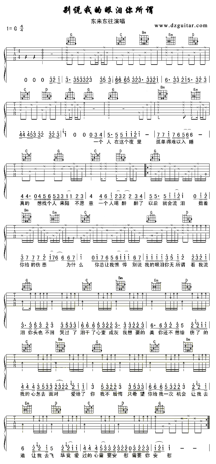 《别说我的眼泪你无所谓》吉他谱 东来东往