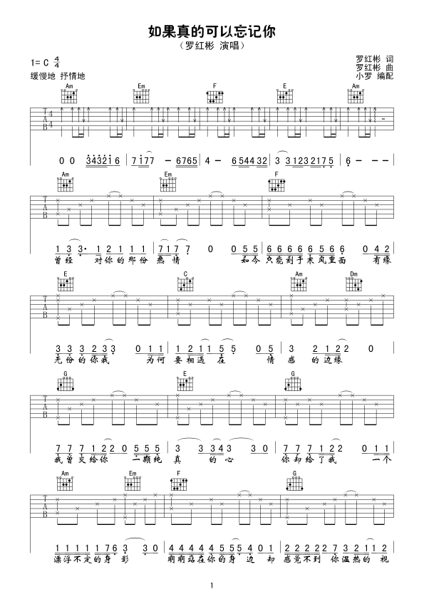 《如果真的可以忘记你》吉他谱