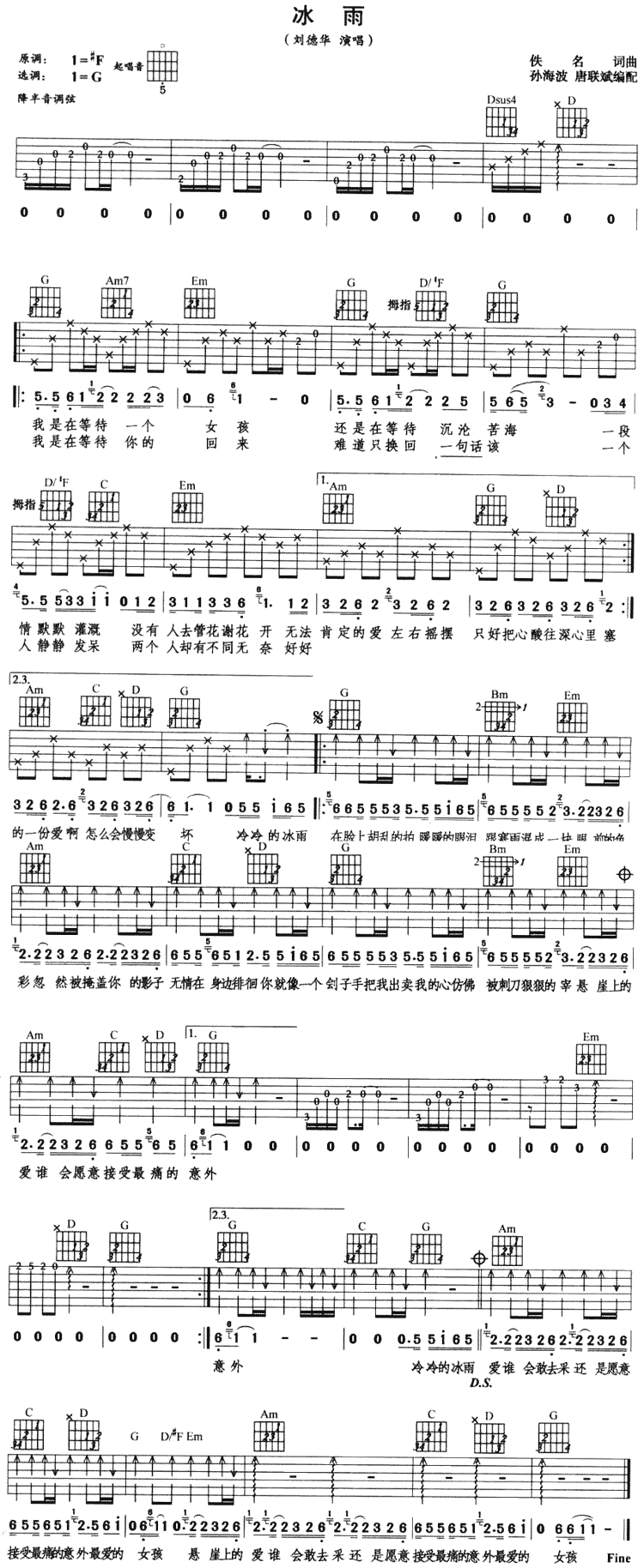 《冰雨》吉他谱 刘德华