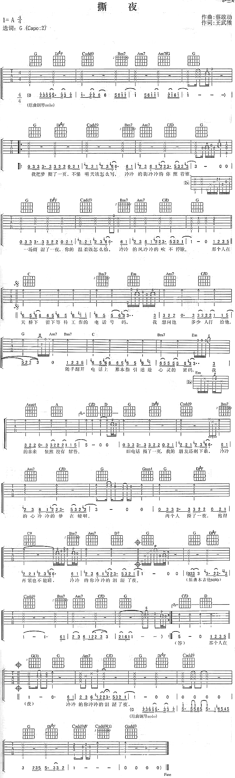 《撕夜》吉他谱 阿杜