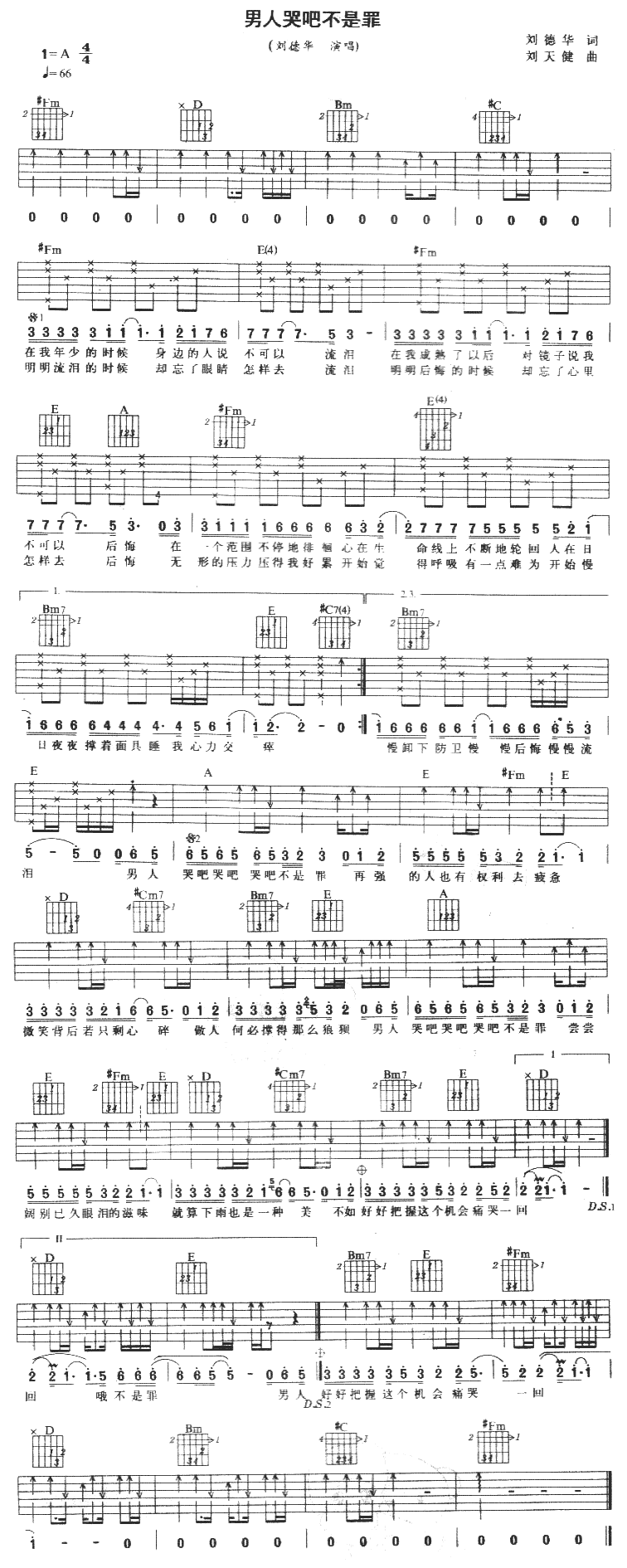 《男人哭吧不是罪》简谱 刘德华 点这里
