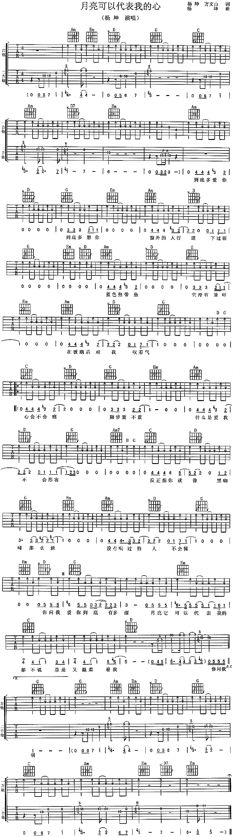 《月亮可以代表我的心》总谱 杨坤 点这里