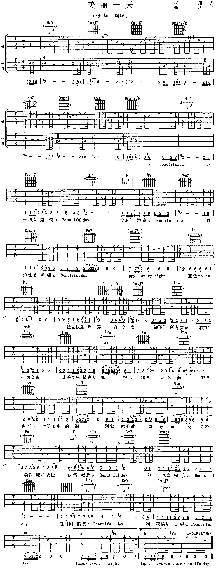 《美丽一天》吉他谱 杨坤