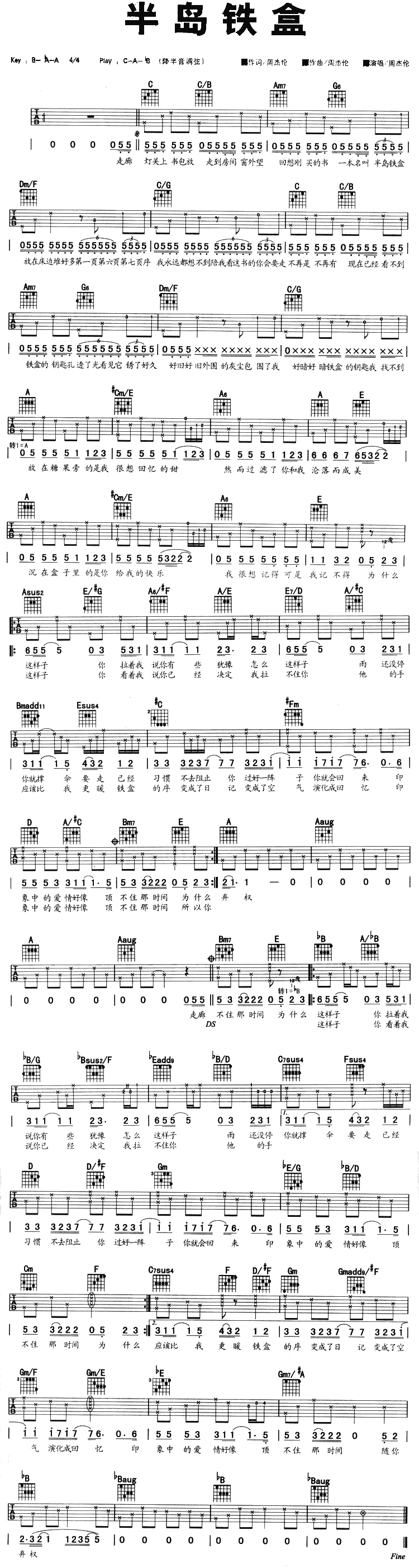 《半岛铁盒》吉他谱 周杰伦