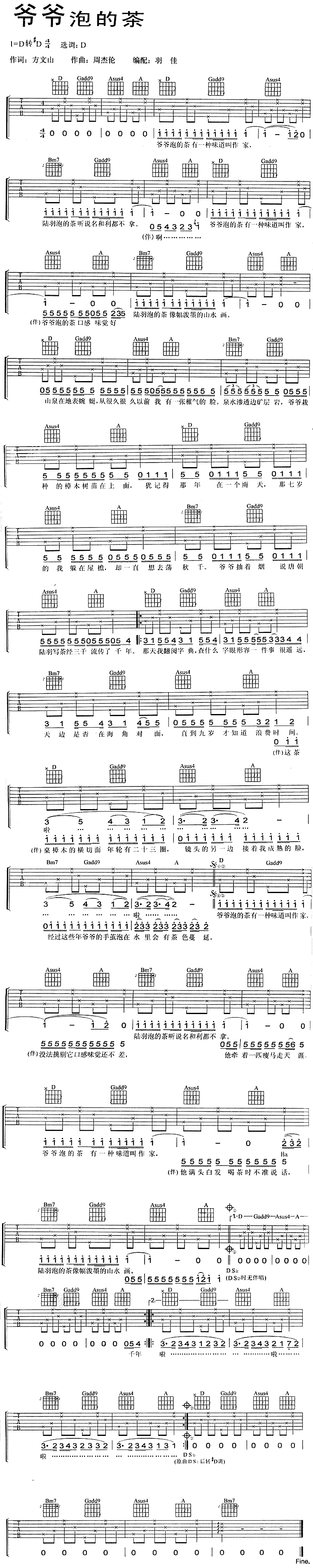 《爷爷泡的茶》吉他谱 周杰伦