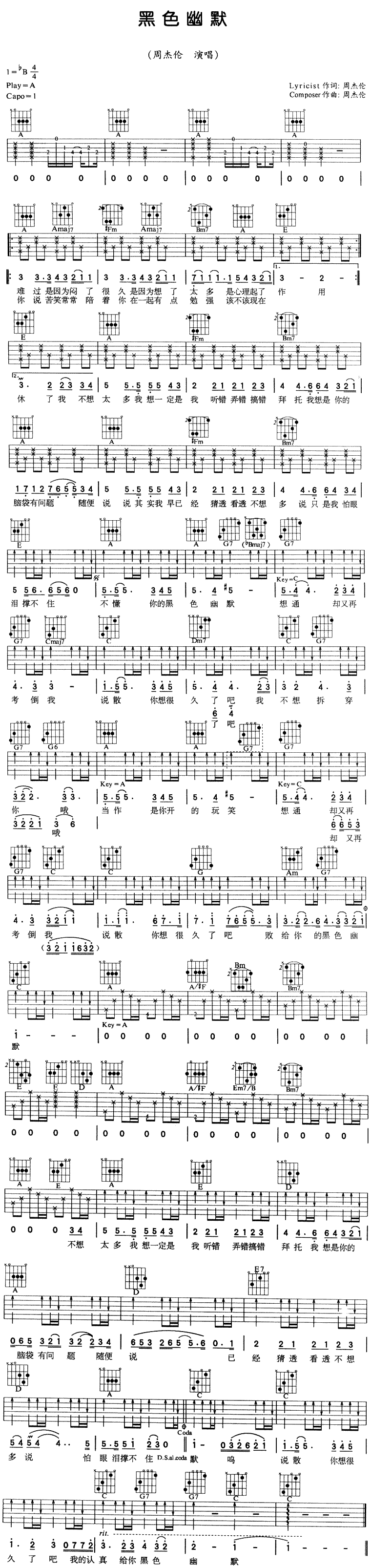 《黑色幽默》电子琴谱 周杰伦 点这里