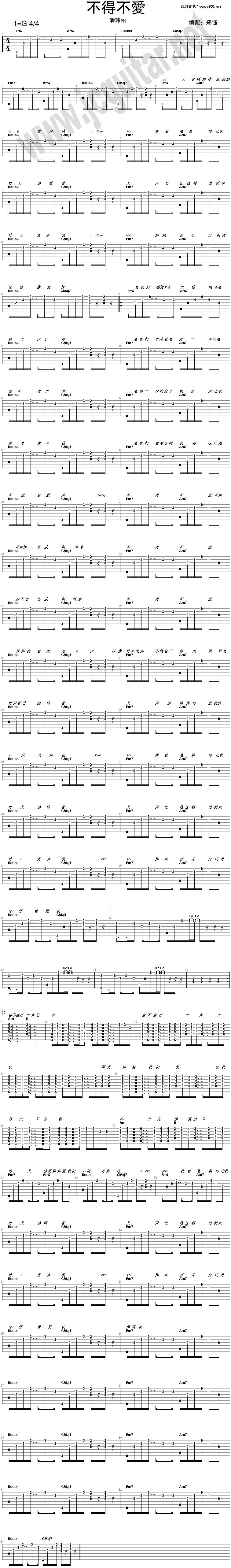 《不得不爱》吉他谱 潘玮柏