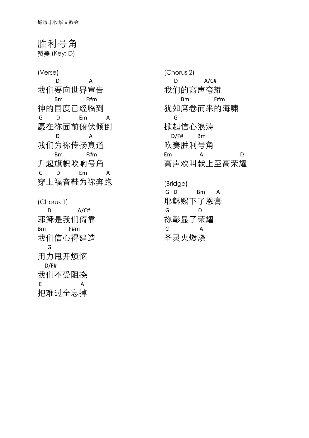 《胜利号角(和弦谱)》吉他谱