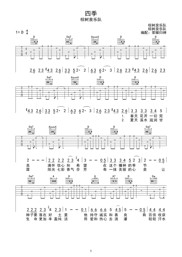 《棕树泉乐队《四季》》吉他谱 棕树泉乐队