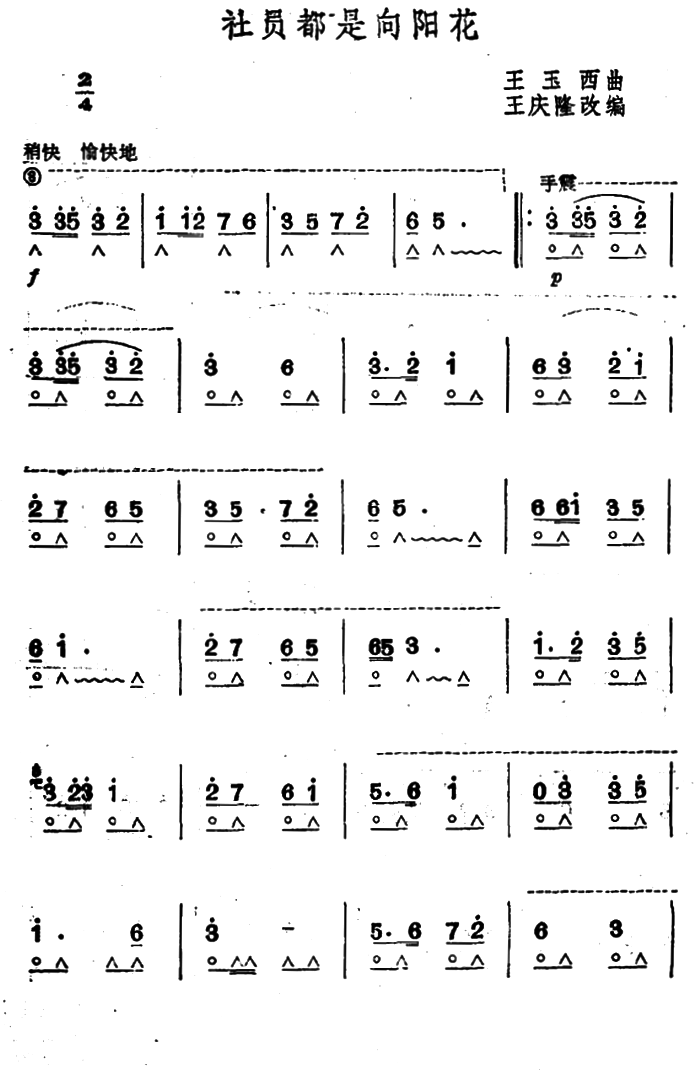 《口琴独奏经典老歌社员都是向阳花曲谱》口琴谱