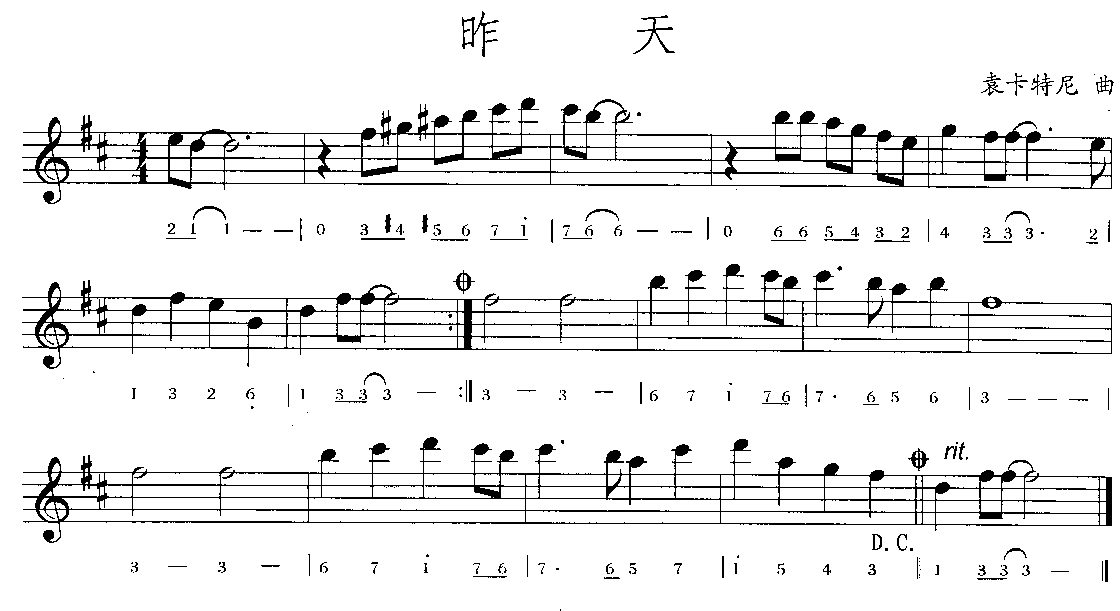 《昨天口琴五线谱与简谱》口琴谱