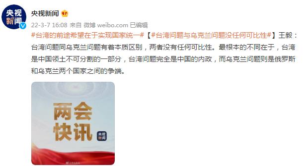 原标题:王毅:台湾问题与乌克兰问题没任何可比hth华体会官网入口性