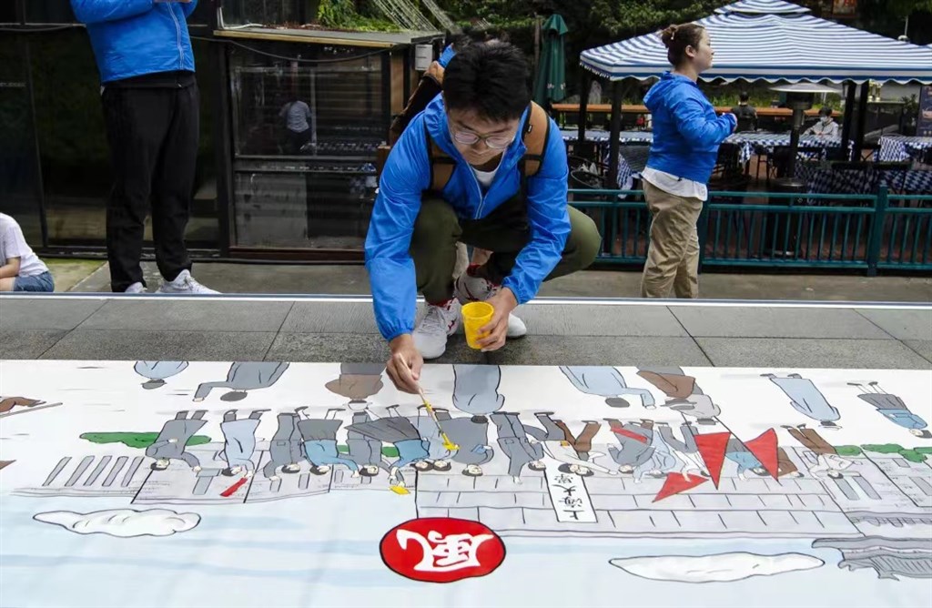 正是通过在“五卅”思政大讲堂“上课”开启“灵感”,2021年七一前夕,街道辖区内的高顿党团员青年以绘图填色的方式完成了五卅风云主题长卷。