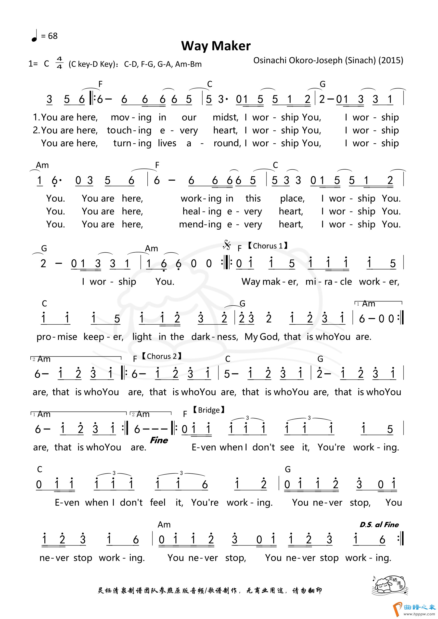 第133首 -Way Maker(英文)和弦简谱