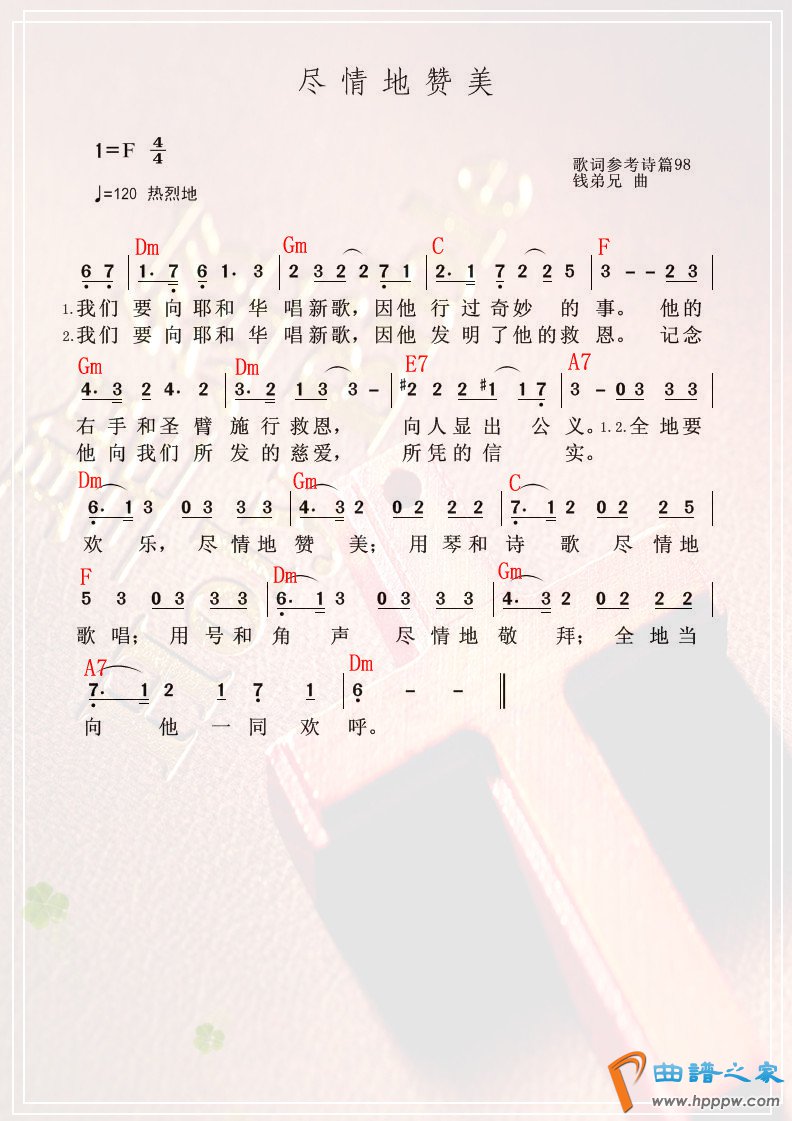 尽情地赞美 和弦简谱