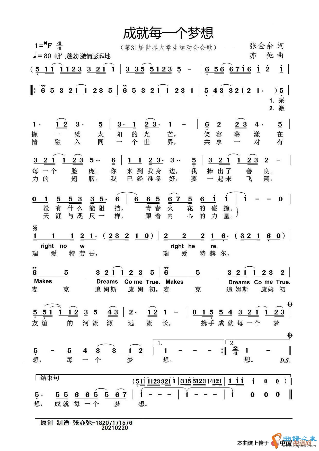 成就每一个梦想(亦弛原创)(第31届世界大学生运动会会歌)