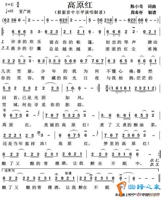 高原红(根据容中尔甲演唱制谱)