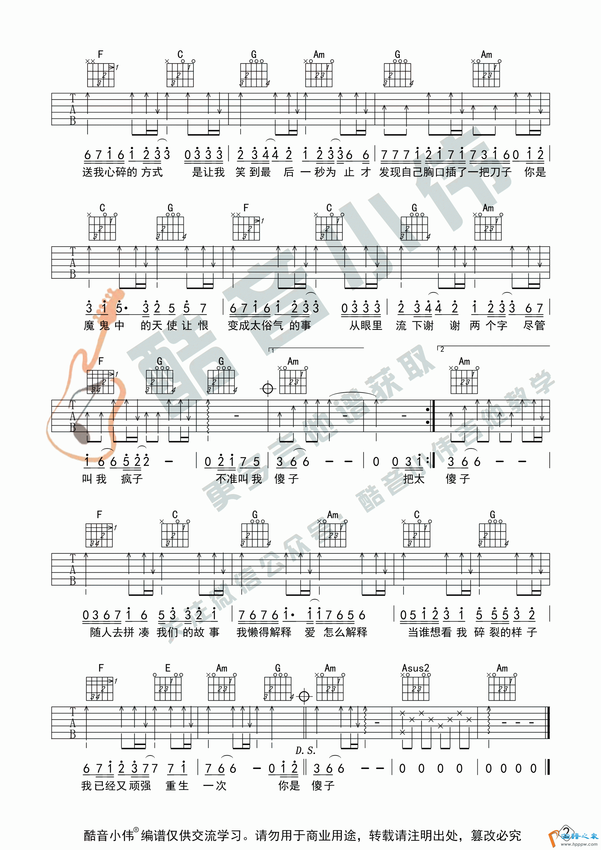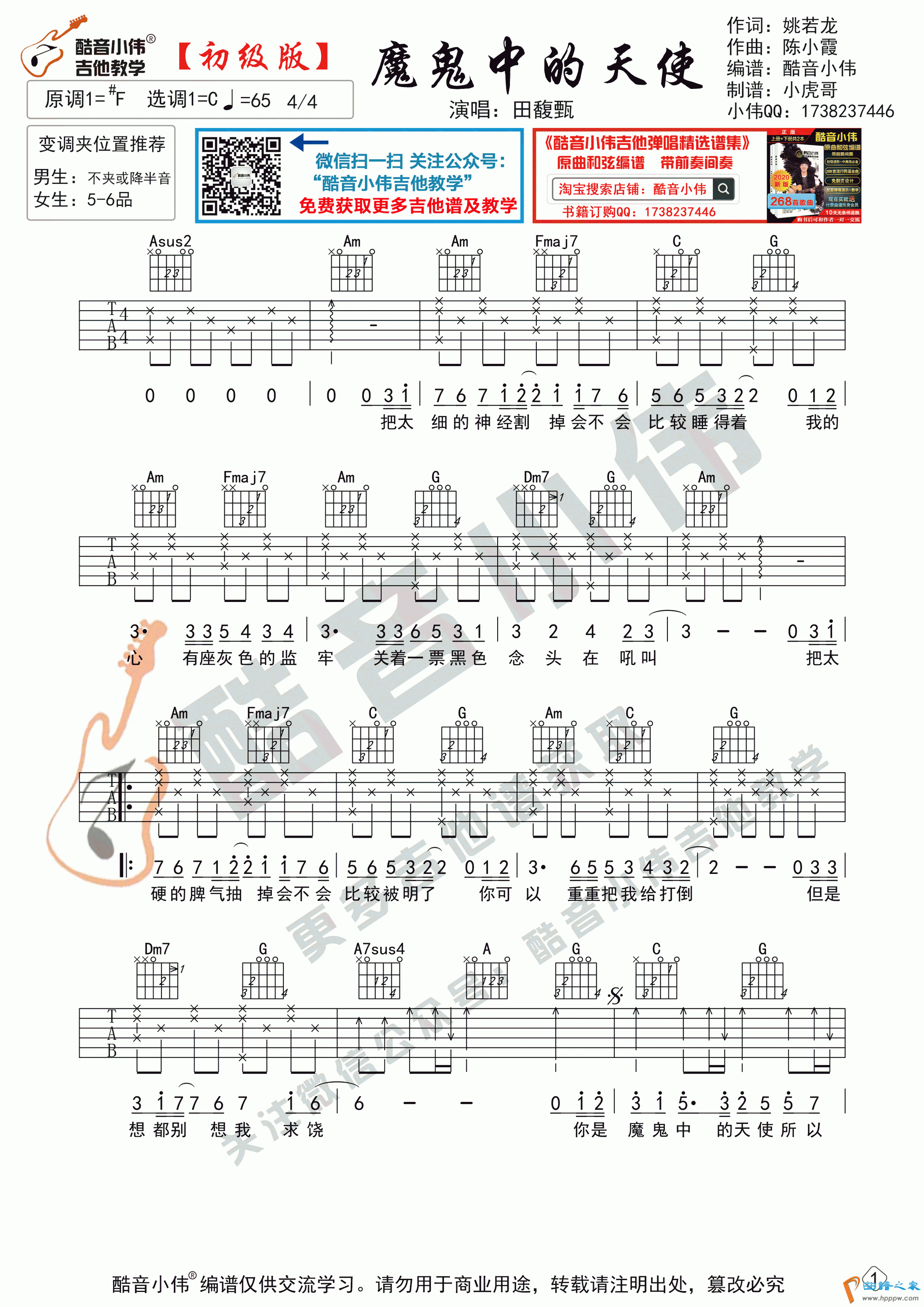 《魔鬼中的天使》吉他谱初级简单版 酷音小伟吉他弹唱教学