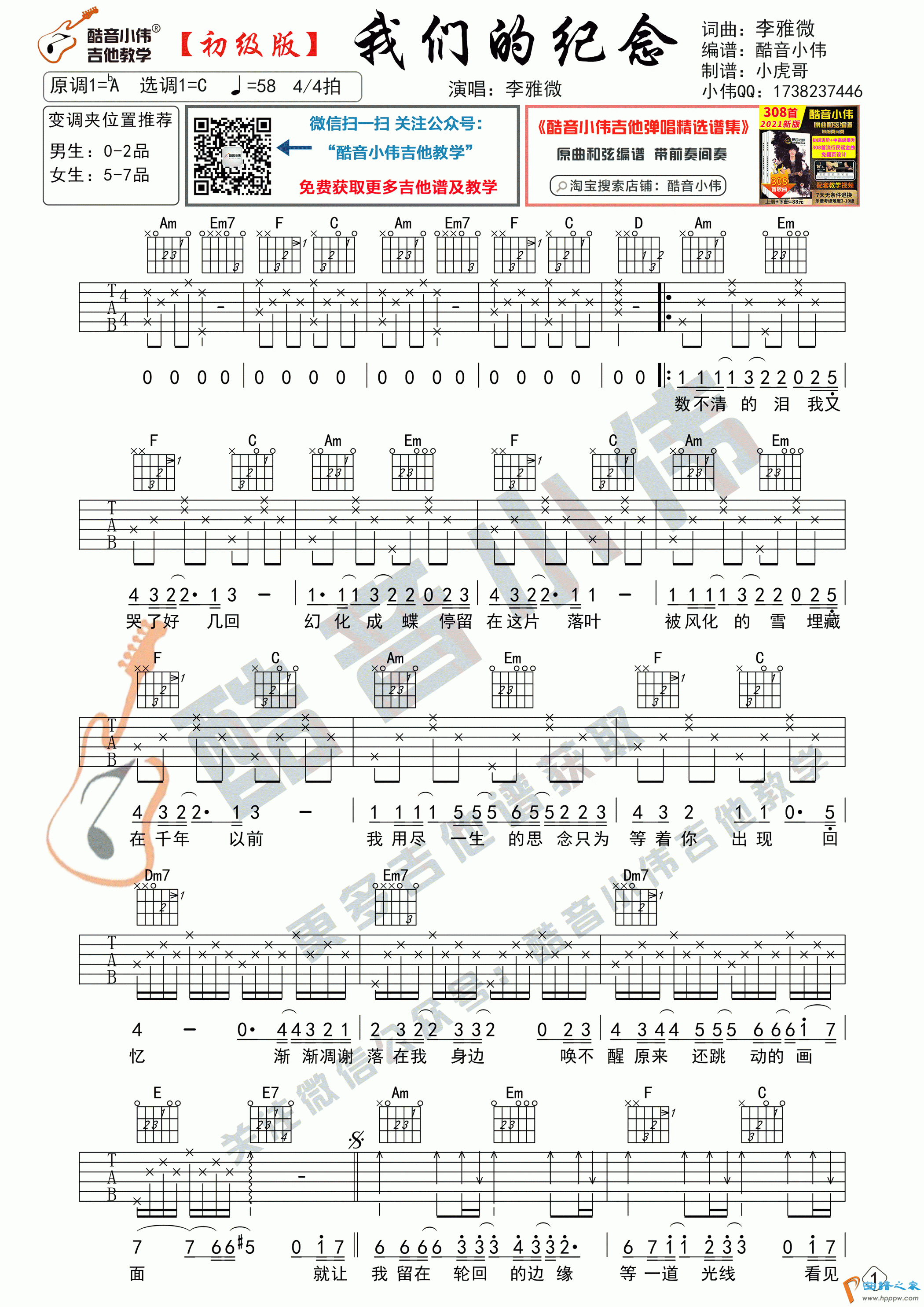 《我们的纪念》李雅微吉他谱初级简单版《放羊的星星》插曲(酷音