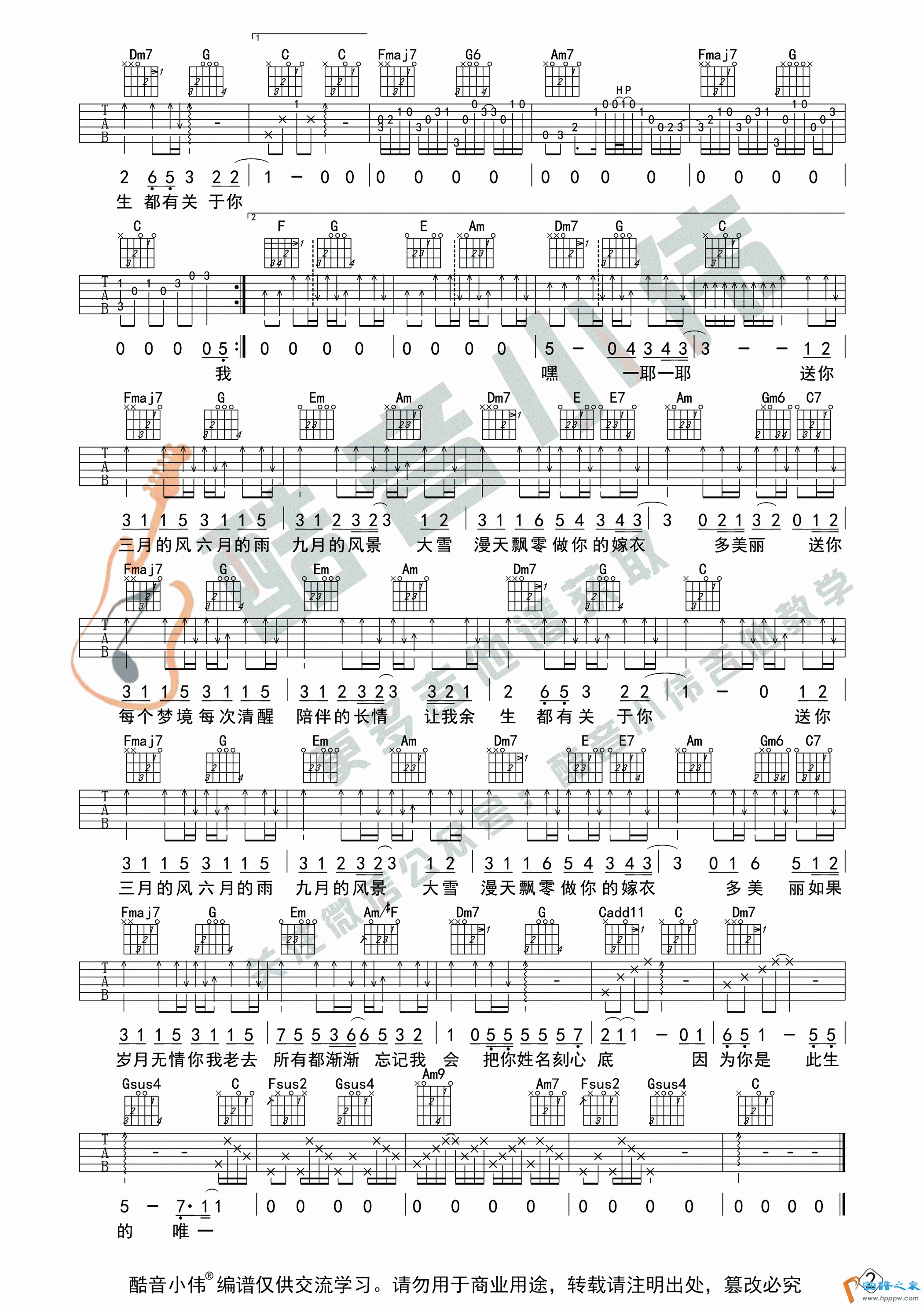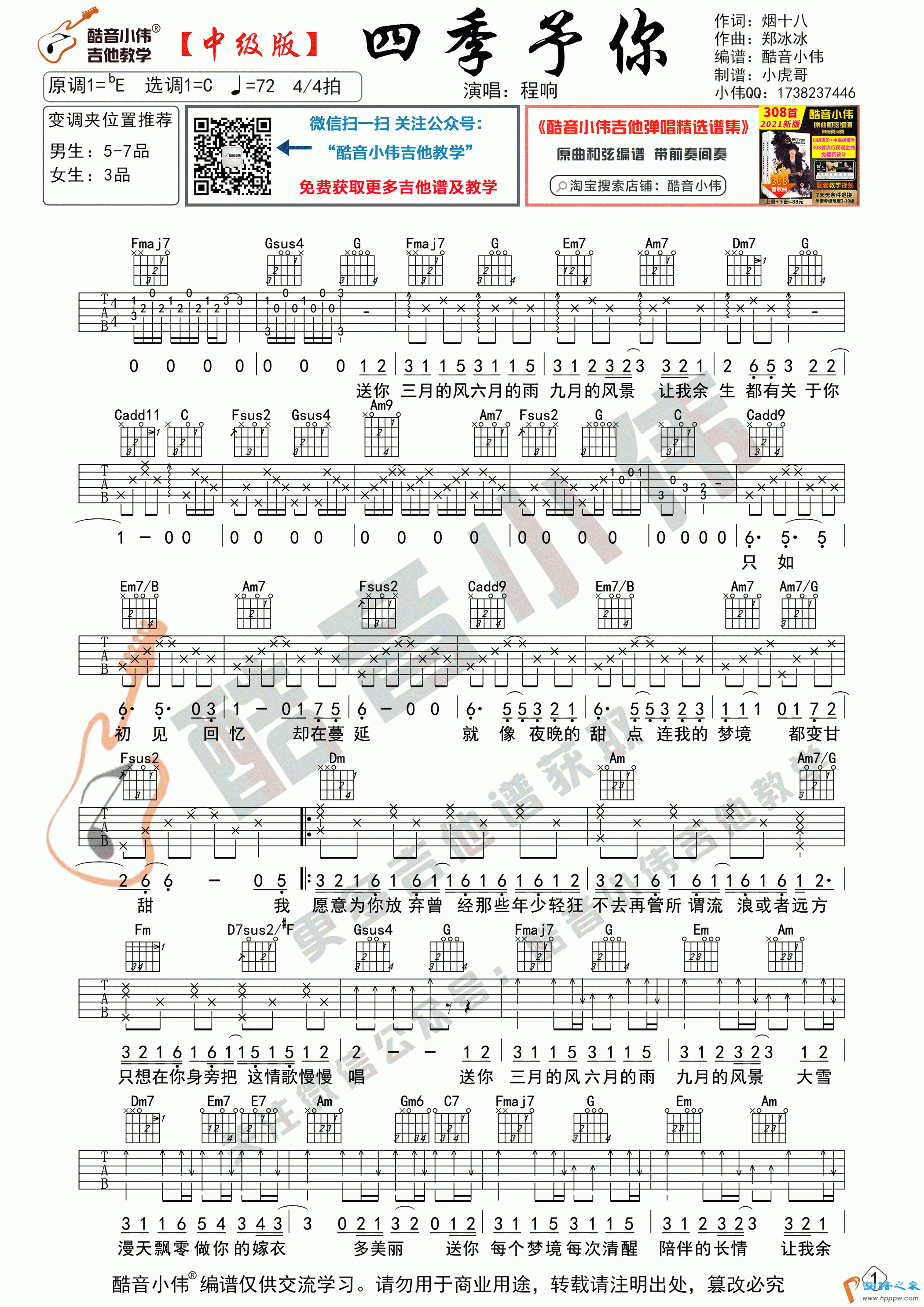 《四季予你》程响吉他谱中级版 带教学视频(酷音小伟吉他教学)