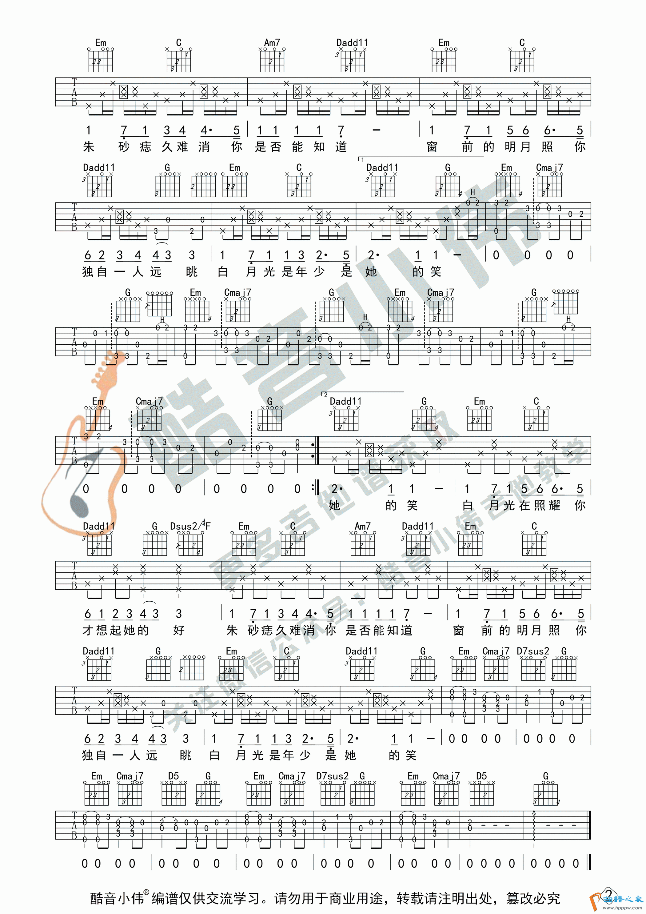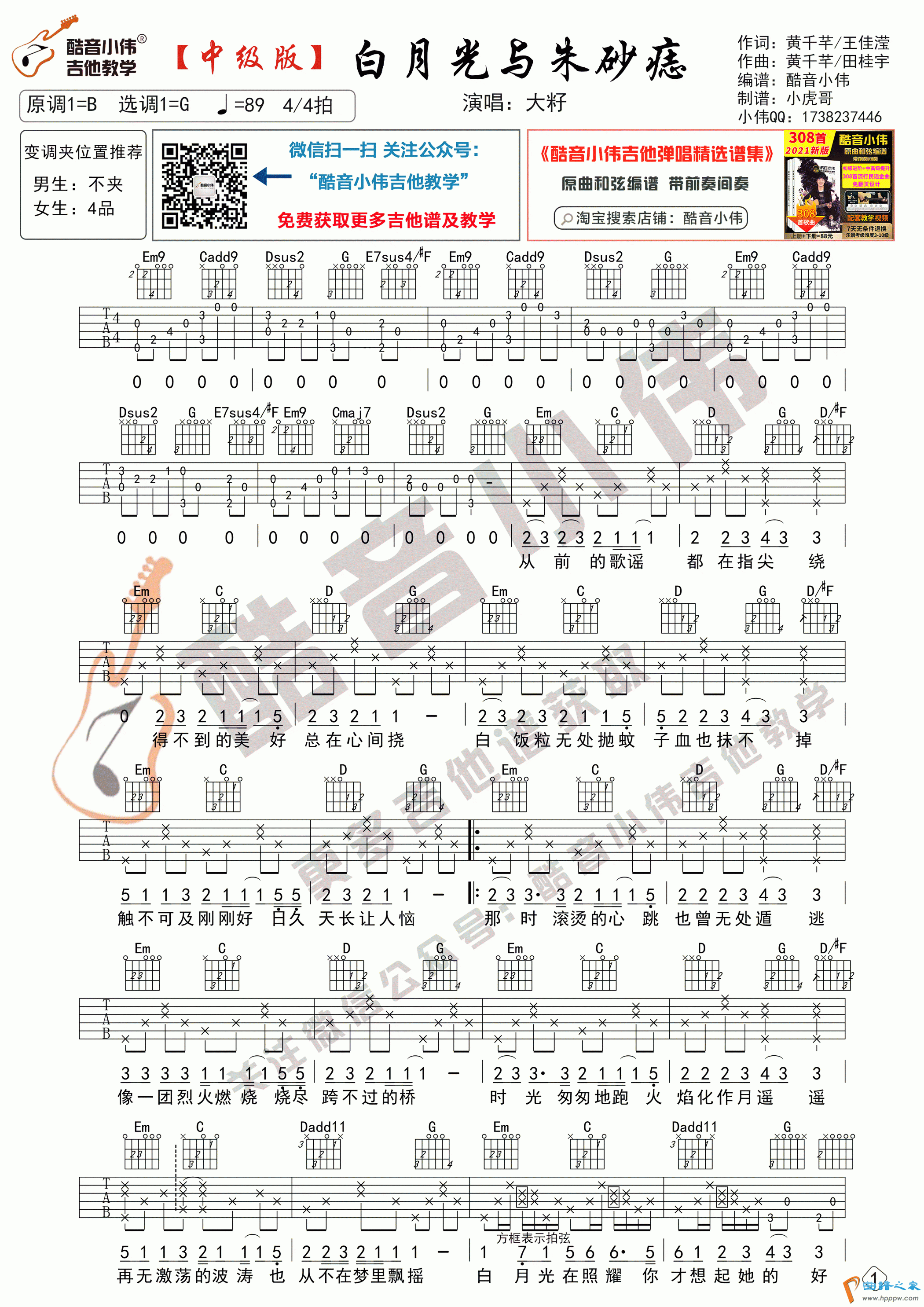 《白月光与朱砂痣》吉他谱中级版带教学视频(酷音小伟吉他教学)