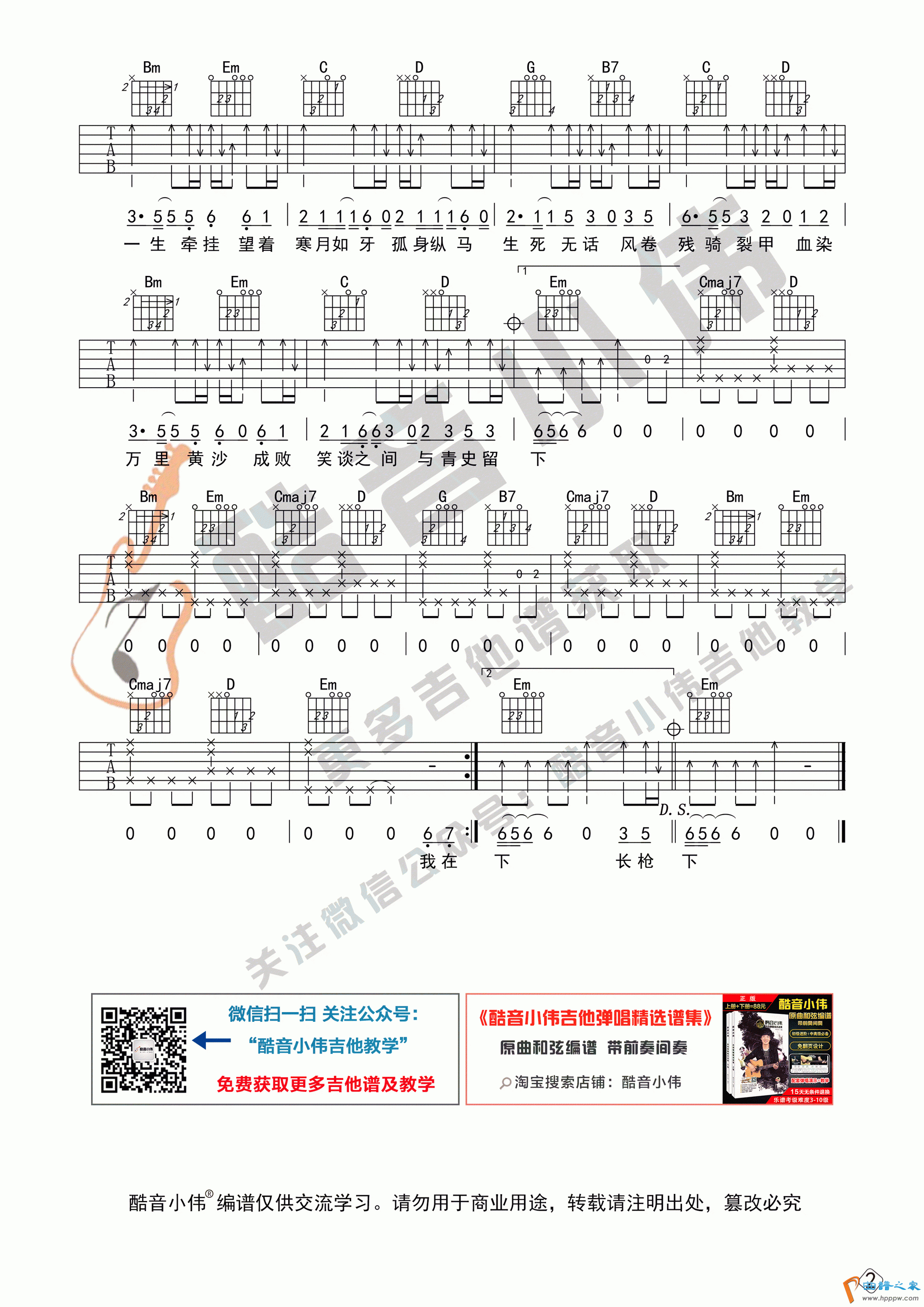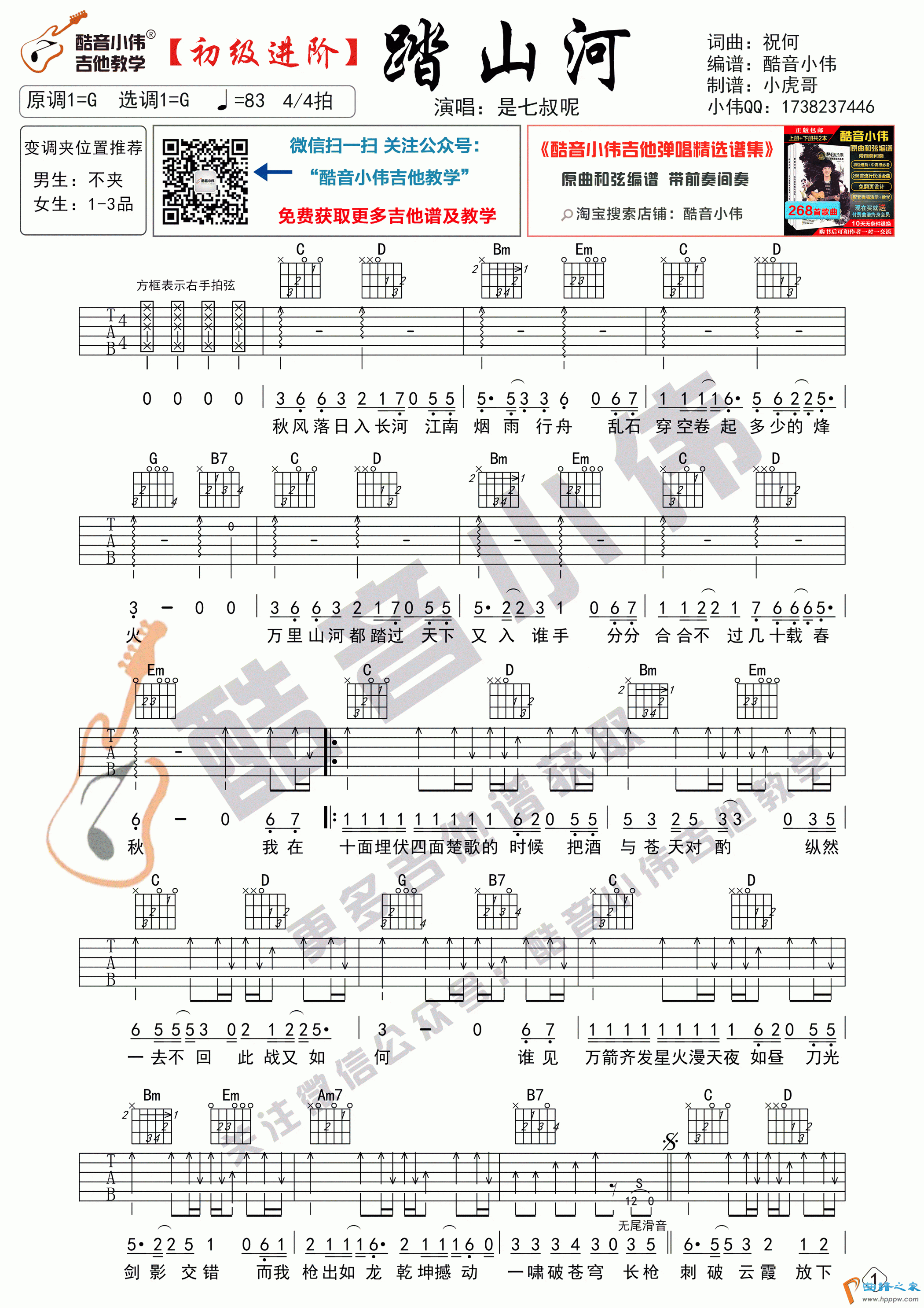 《踏山河》吉他谱初级进阶版 酷音小伟吉他弹唱教学
