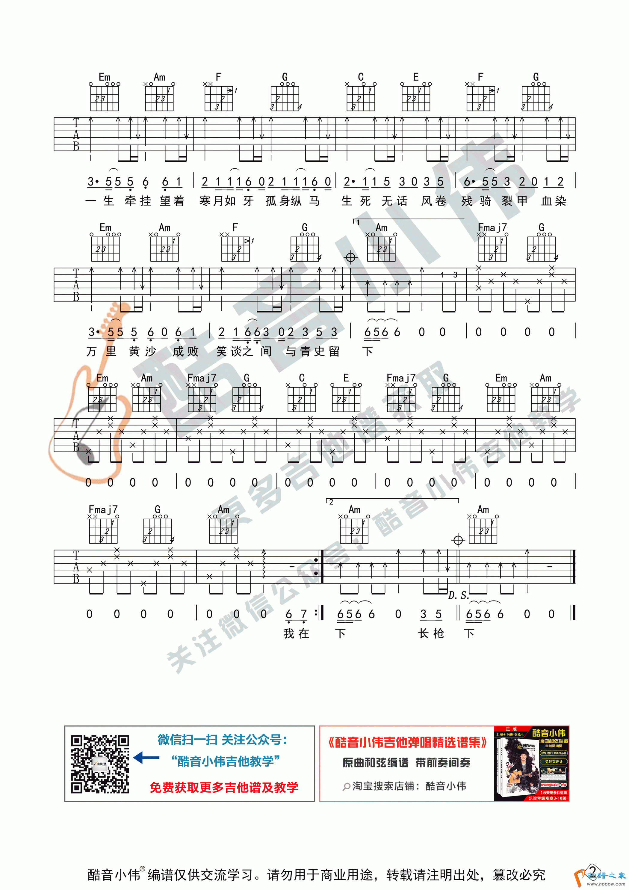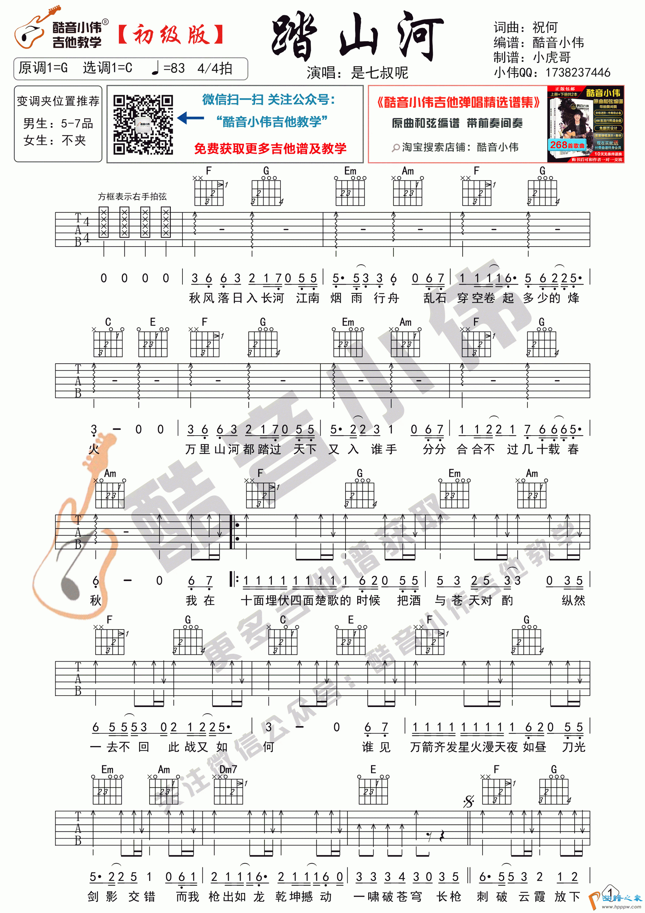 《踏山河》吉他谱初级版 酷音小伟吉他弹唱教学(酷音小伟编谱)