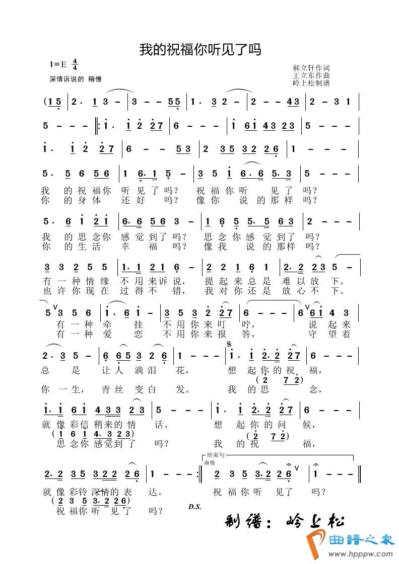 为您搜集整理歌曲曲谱歌谱、简谱、吉它谱、钢琴谱!
