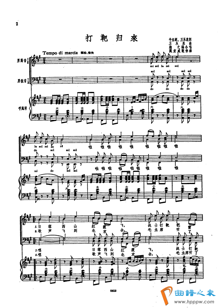 打靶归来(男声合唱)(手风琴伴奏谱)(戴宏威配伴奏)