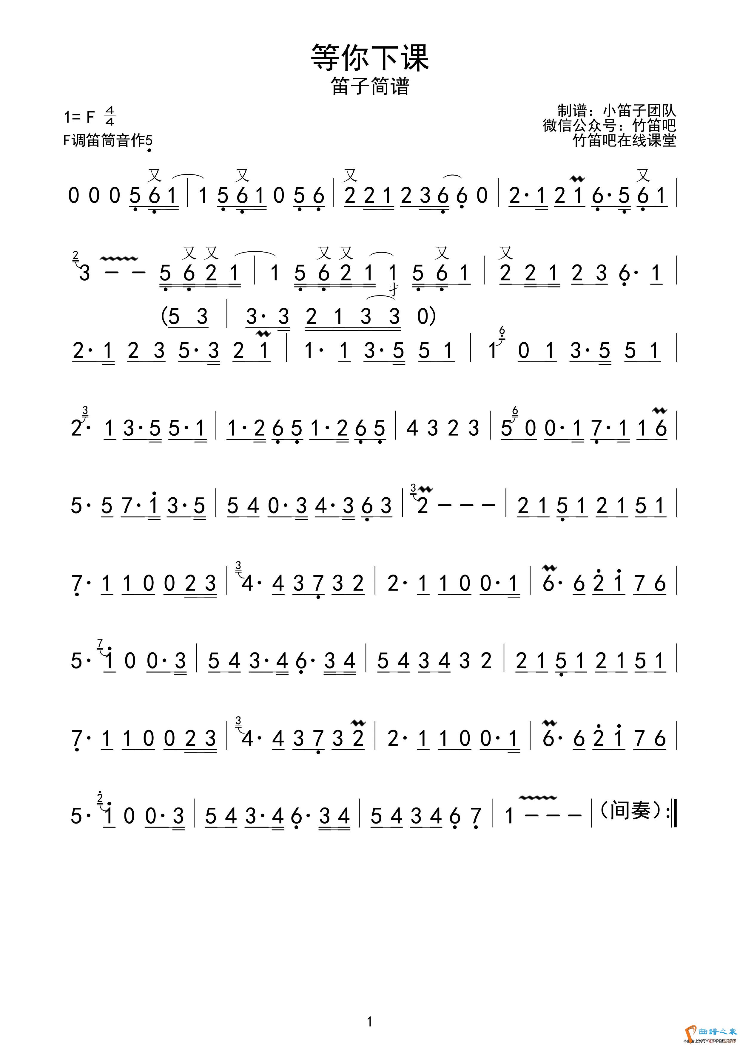 等你下课(笛子主旋律简谱)