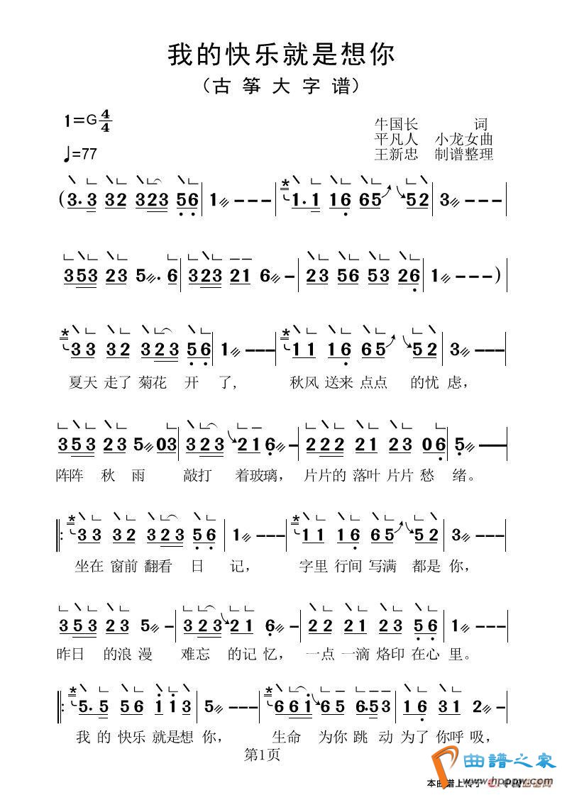 我的快乐就是想你(古筝大字谱)