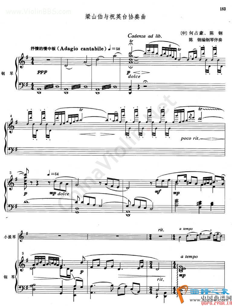梁山泊与祝英台(梁祝)小提琴钢琴协奏曲
