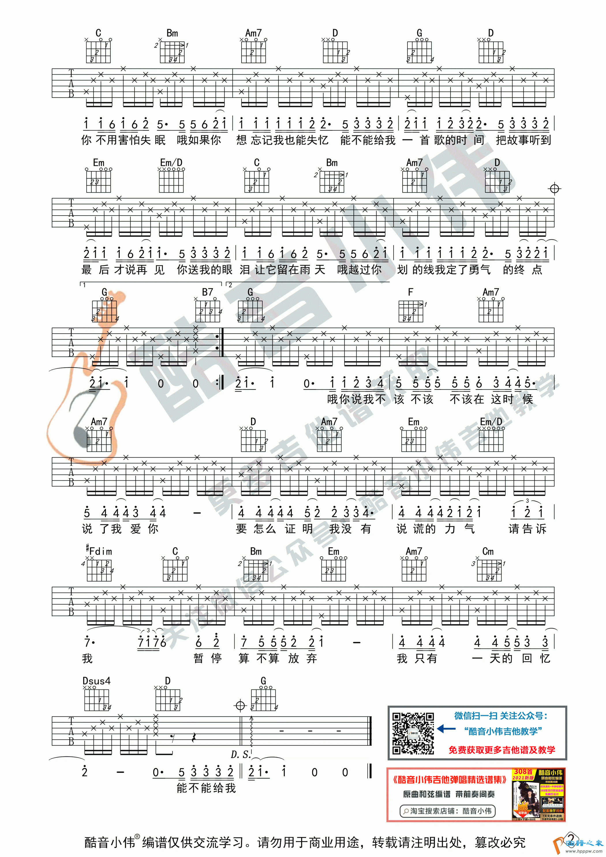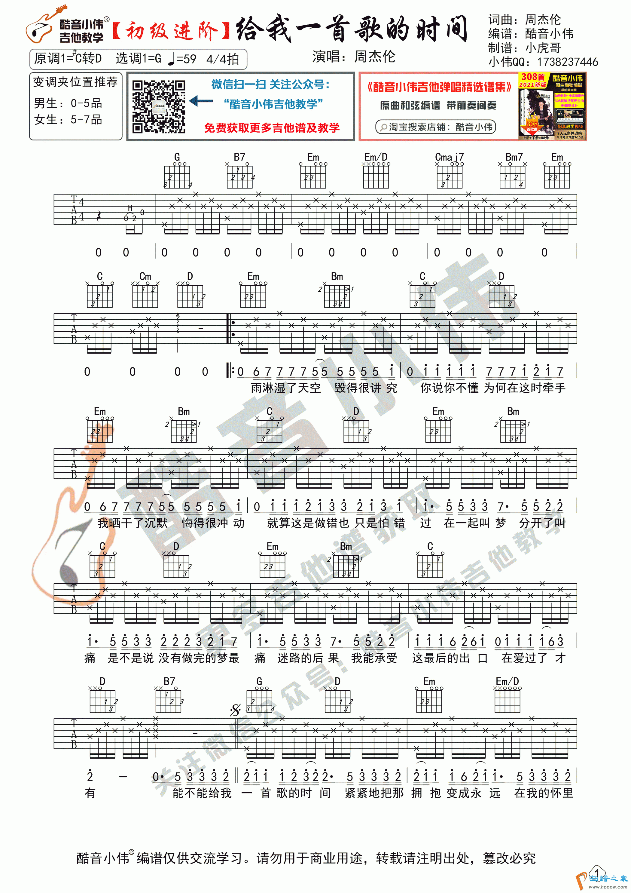 《给我一首歌的时间》吉他谱初级进阶(酷音小伟吉他教学)