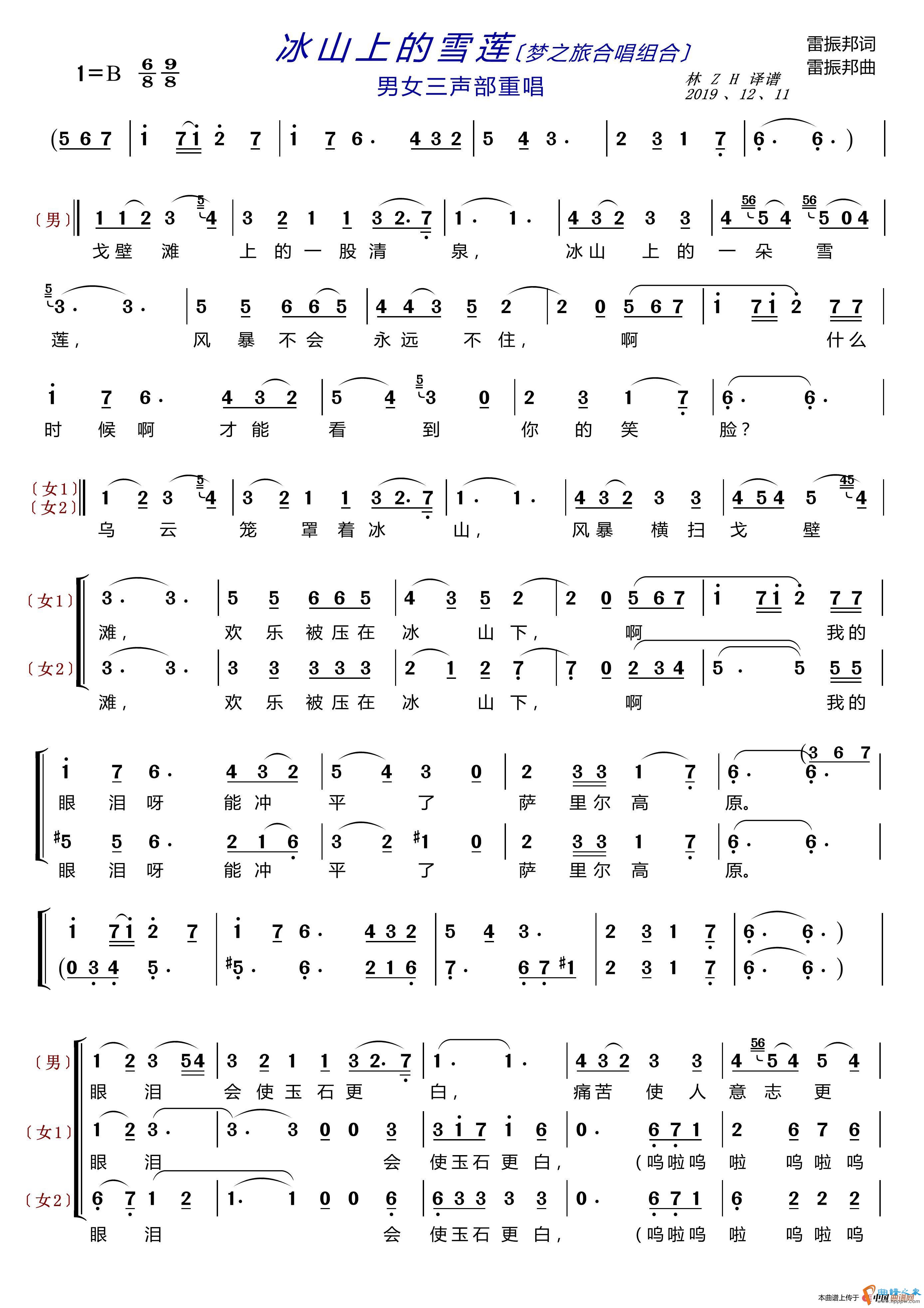 冰山上的雪莲〔梦之旅合唱组合〕(男女三声部重唱)