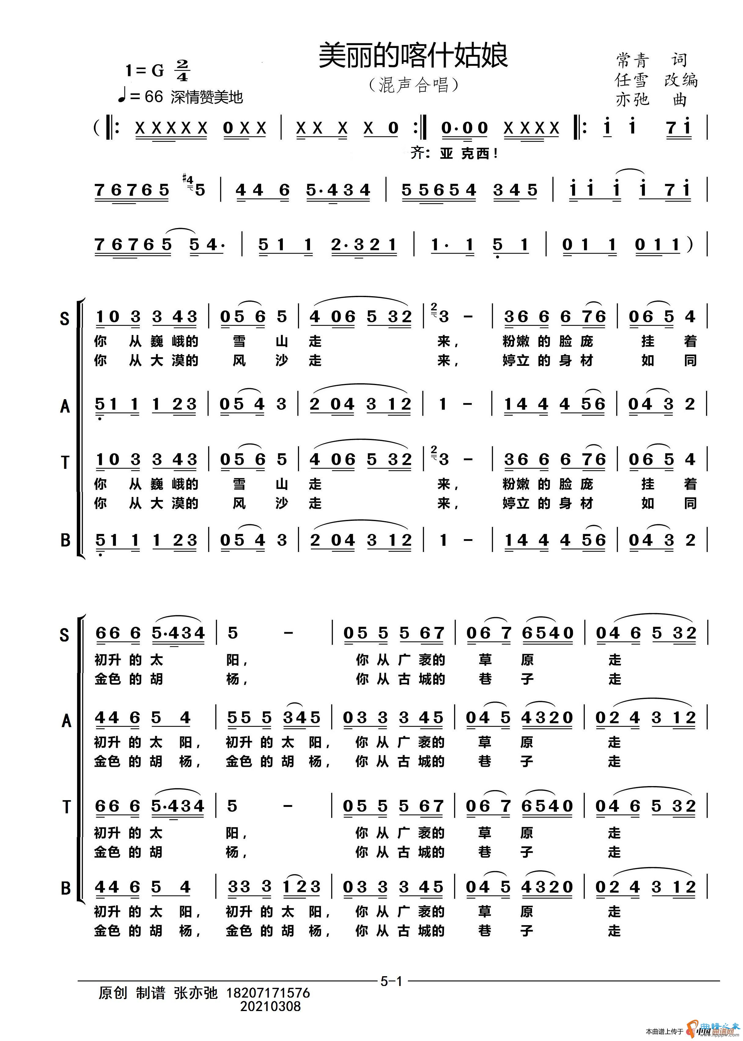 美丽的喀什姑娘(亦弛原创)(混声合唱)