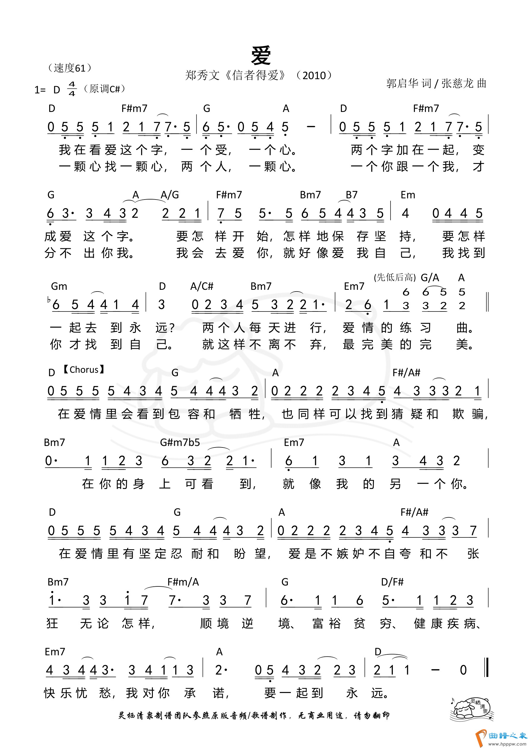 第140首 -爱(郑秀文) 和弦简谱