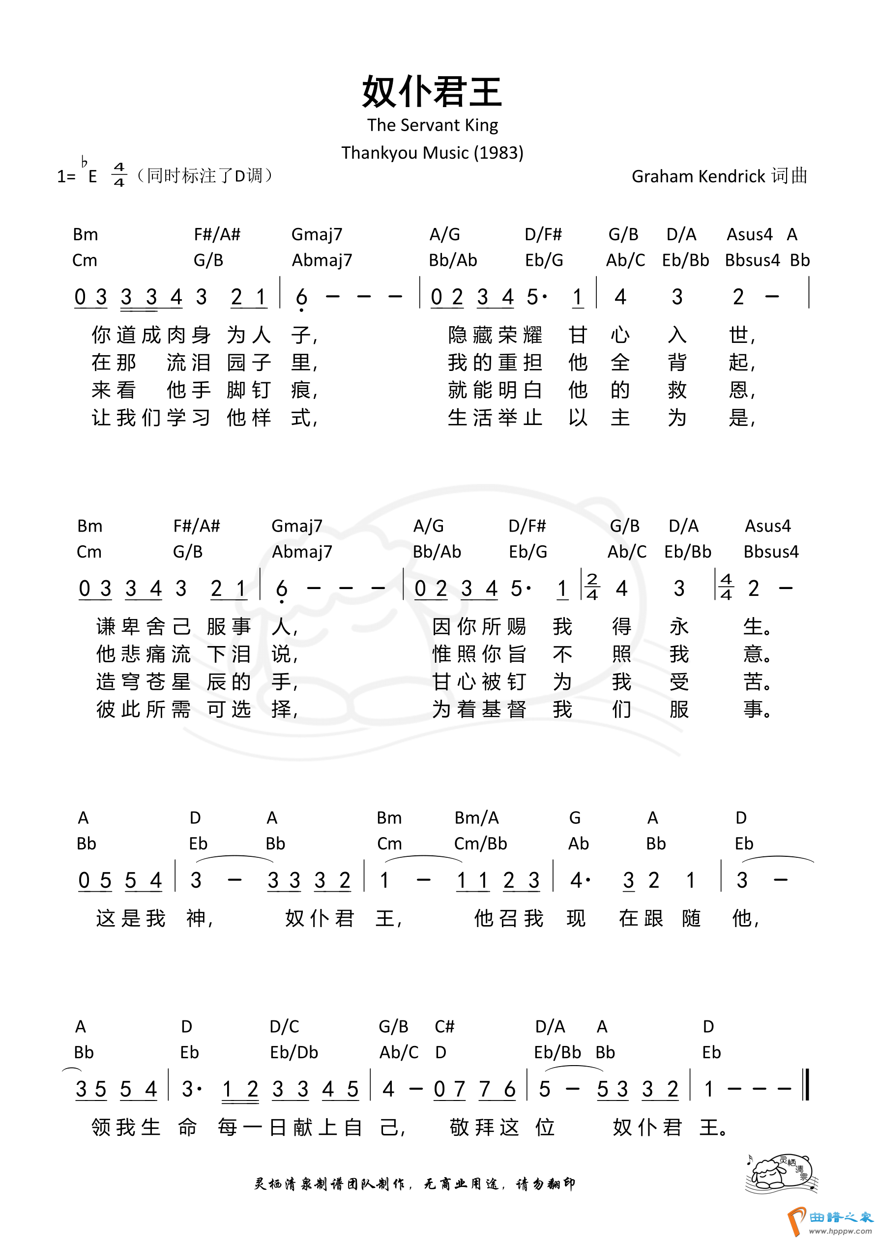 第216首 -奴仆君王 和弦简谱