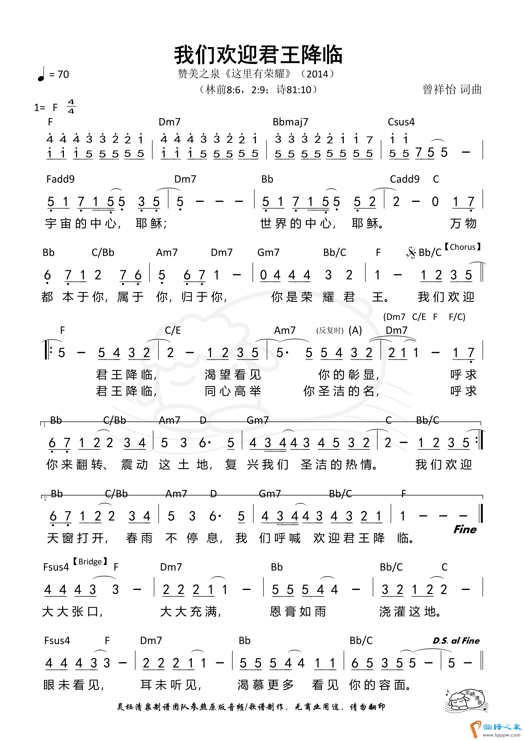 第319首 -我们欢迎君王降临(F调) 和弦简谱