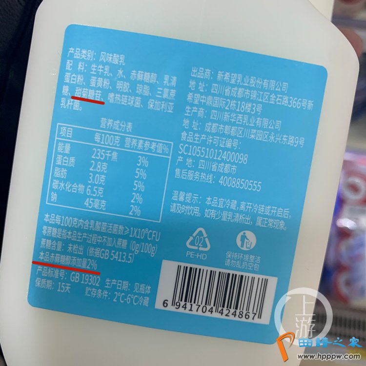 △在一款标注“无蔗糖”的风味酸乳饮品的配料表中,含有其他糖类成分。